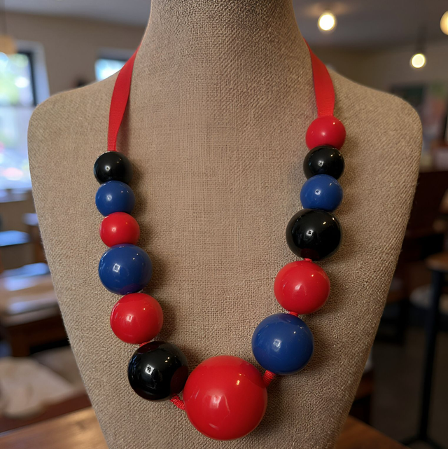 Collar de bolas de resina enganchada en lazo de seda rojo