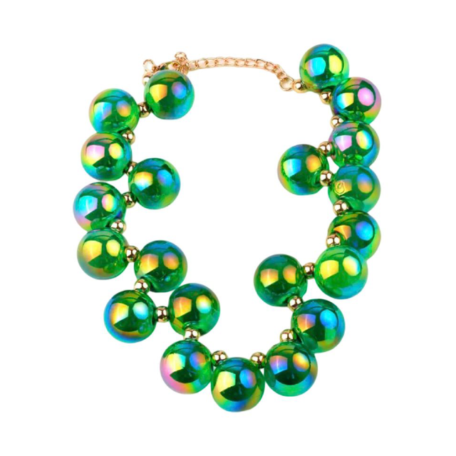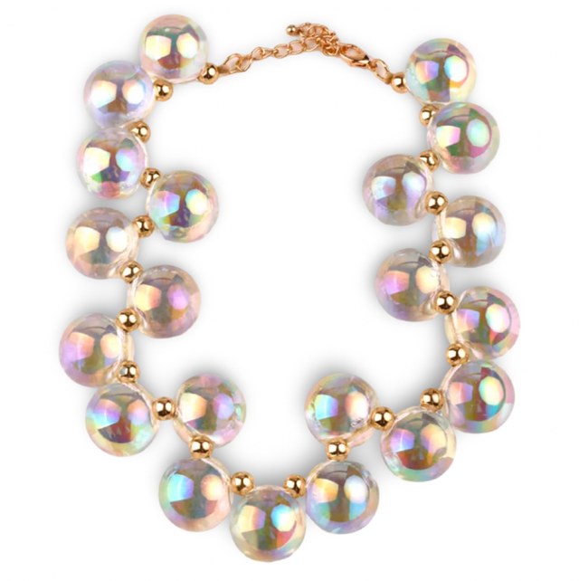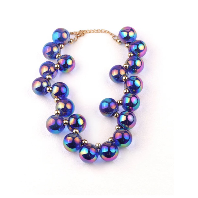 Dale un toque vibrante y moderno a tu look con nuestra gargantilla de esferas luminosas. Elaborada en acrílico de alta calidad, esta pieza destaca por sus esferas brillantes con efecto iridiscente que reflejan la luz en una explosión de colores, creando un acabado llamativo y elegante.