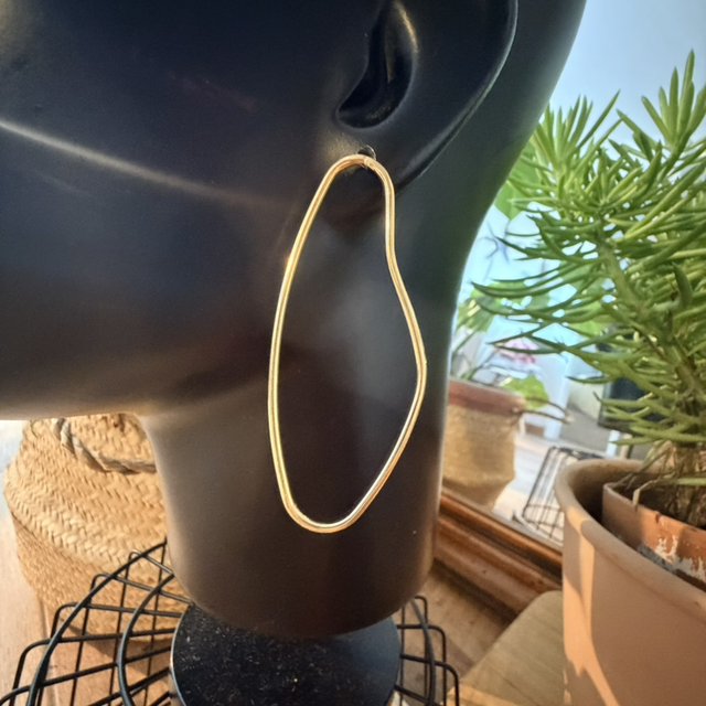 Estos pendientes de aro orgánico alargado destacan por su forma fluida e irregular, inspirada en las líneas naturales y en la belleza de lo imperfecto.