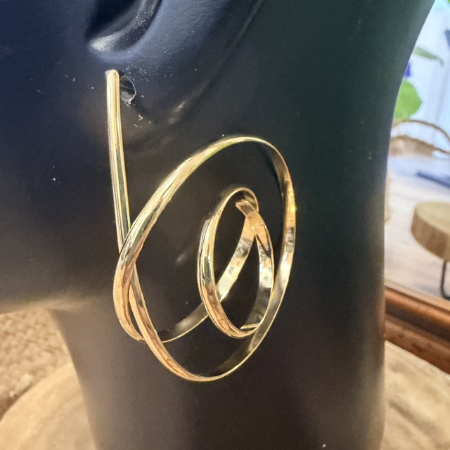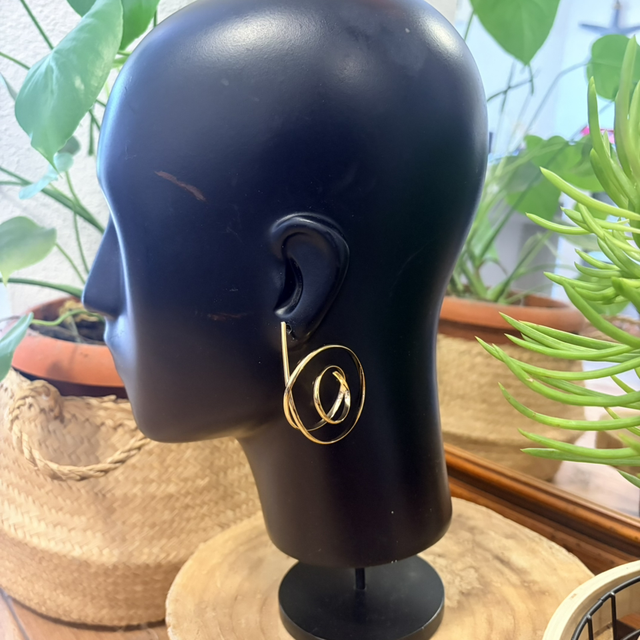 Este diseño en forma de espiral envuelve la oreja con un gesto fluido y contemporáneo, casi como un trazo dibujado en el aire.