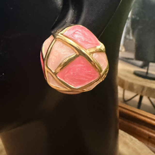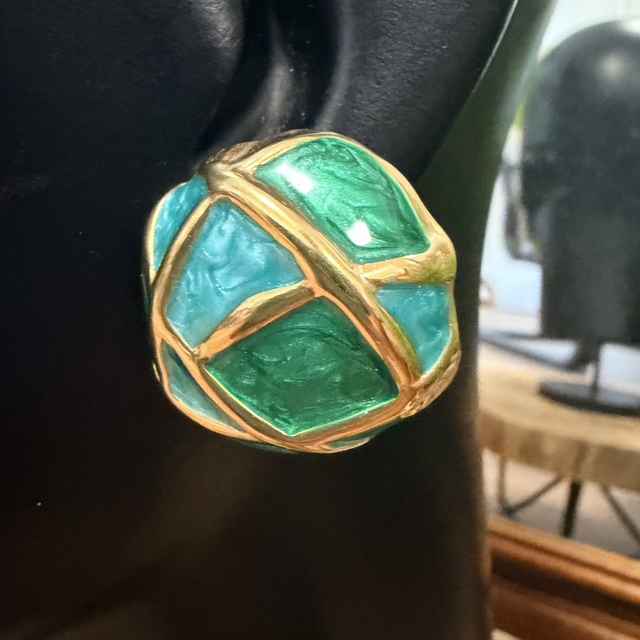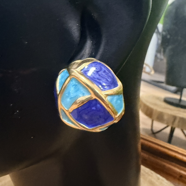 Los Pendientes Cúpula están elaborados en acero bañado en oro de 14 kilates, un acabado que aporta luminosidad, durabilidad y un tacto refinado. La superficie está pintada con resina, creando un efecto profundo y brillante que realza la textura y las formas geométricas de la pieza.