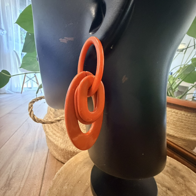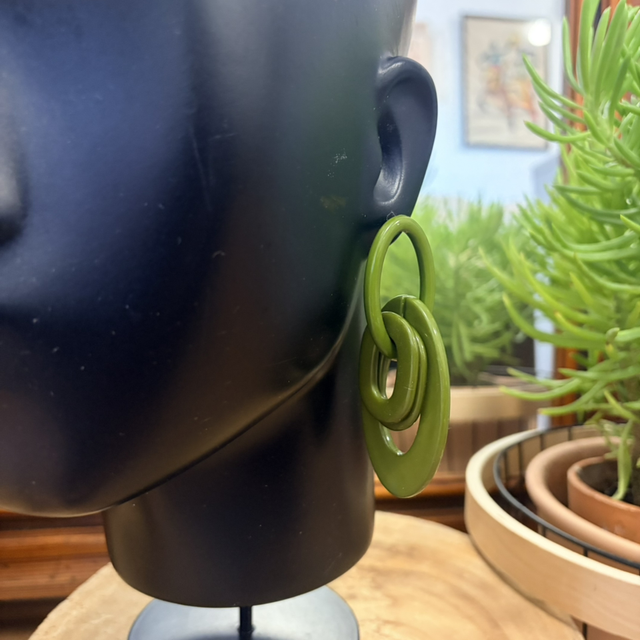 Diseñados para quienes buscan versatilidad y presencia, estos pendientes están formados por tres anillas de resina ligera que crean un movimiento fluido y muy favorecedor. Su acabado brillante aporta un toque moderno y pulido.